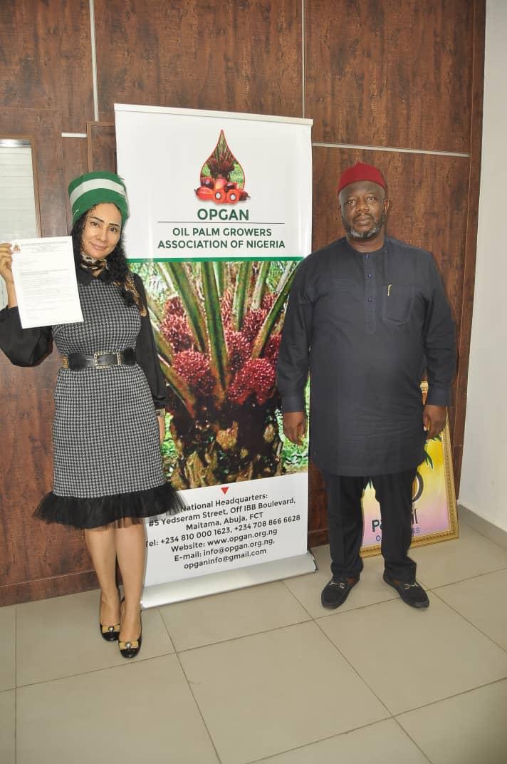 Sally with appointed patron and director oil palm growers association in 2025 responsible for youth and women empowerment
