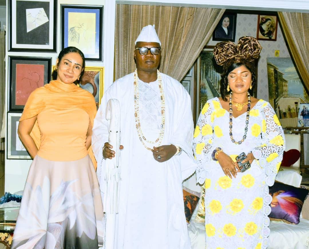 Sally With The Ooni of Ife welcoming the First Lady to Ife