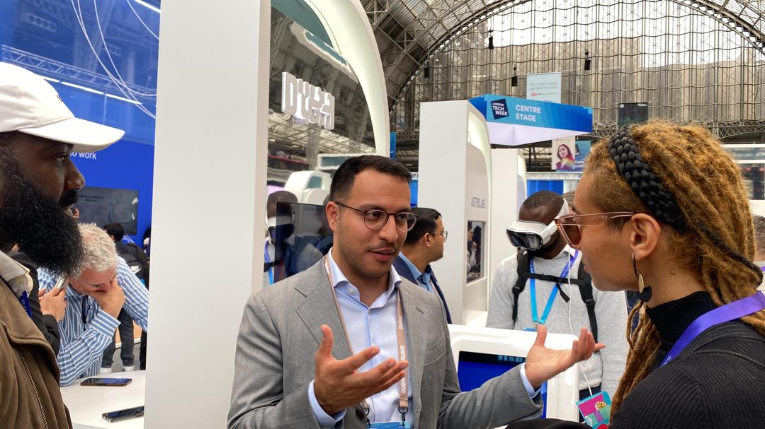 Sally, Ademola and chantal film production and psychotherapist in London Tech week exhibition seeking collaboration for virtual learning in rural schools and youth